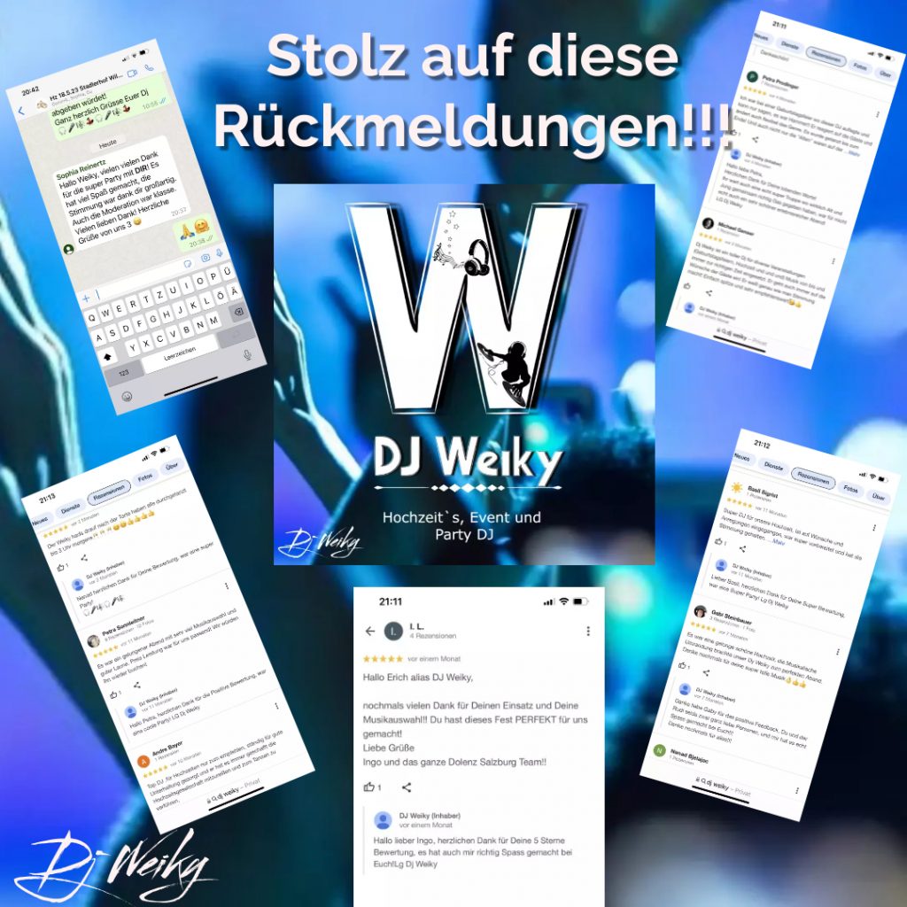 Hier bekommst du einen Einblick in vergangene Events mit DJ Weiky – deinem DJ für Hochzeiten, Geburtstage, Firmenfeiern & Events aller Art!